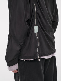 KIKO KOSTADINOV hoodie in black, paneled mesh & jersey construction, hood, shoulder zip, long sleeves, layered cuffs, chest draping & darting, layered hem, relaxed fit. Made in Bulgaria Fabric 1: 100% Cotton Fabric 2: 100% Polyester European Sizing Model is 6'1" wearing size 48. Shoulders: 17" Chest: 34" Waist: 28.5"