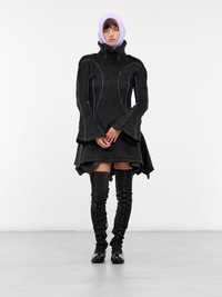 KIKO KOSTADINOV boots in black, Nappa & Vitello leather construction, patent & suede contrasted paneling, thigh-high, brogued vamp, rounded toe, rubber sole. Made in Italy Material 1: 100% Nappa Leather Material 2: 100% Vitello Calf Leather European Sizing