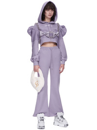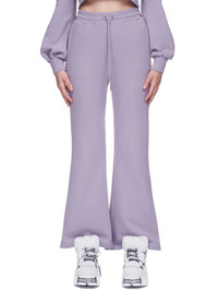 KIMHĒKIM joggers in lilac, drawstring waistband, four hand pocket styling, flared leg silhouette. Made in Korea. Standard Sizing. Model is 5ft 10” and is wearing a size S. Bust: 32” Waist: 25” Hip: 36"