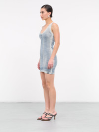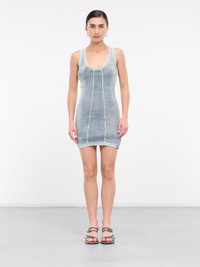 KNWLS sweatshirt in blue, hoodie design, paneled cotton jersey construction, 'petrol' wash, plunged round neckline, shoulder straps, sleeveless, rib-knit collar & armscyes & hem, hem logo patch, straight hemline, mini-length, slim fit. Made in Italy 100% Cotton Standard Sizing Model is 5'7" wearing size S. Bust: 31" Waist: 24" Hips: 30"