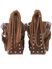 KNWLS shoes in brown, platform design, bespoke luxury french cow leather, contrasting metal stud detailing, pointed square toe, front panel with dual buckles & lace up fastening. Made in Italy European Sizing 100% Cow Leather