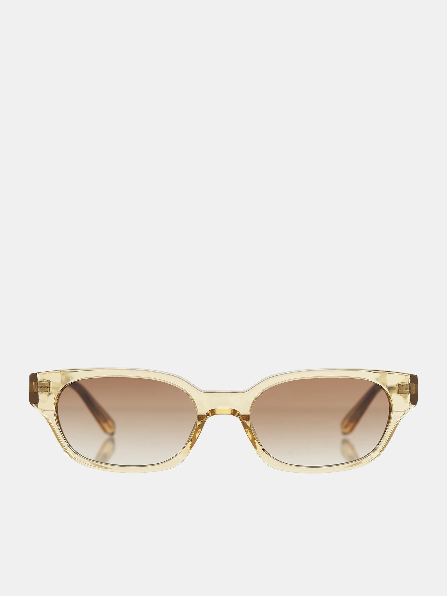 LINDA FARROW x MAGDA BUTRYM sunglasses in yellow & brown, acetate construction, translucent, oval frames, brown-tinted lenses, fixed nose pads, temple logo engraving. Made in Japan Acetate One Size