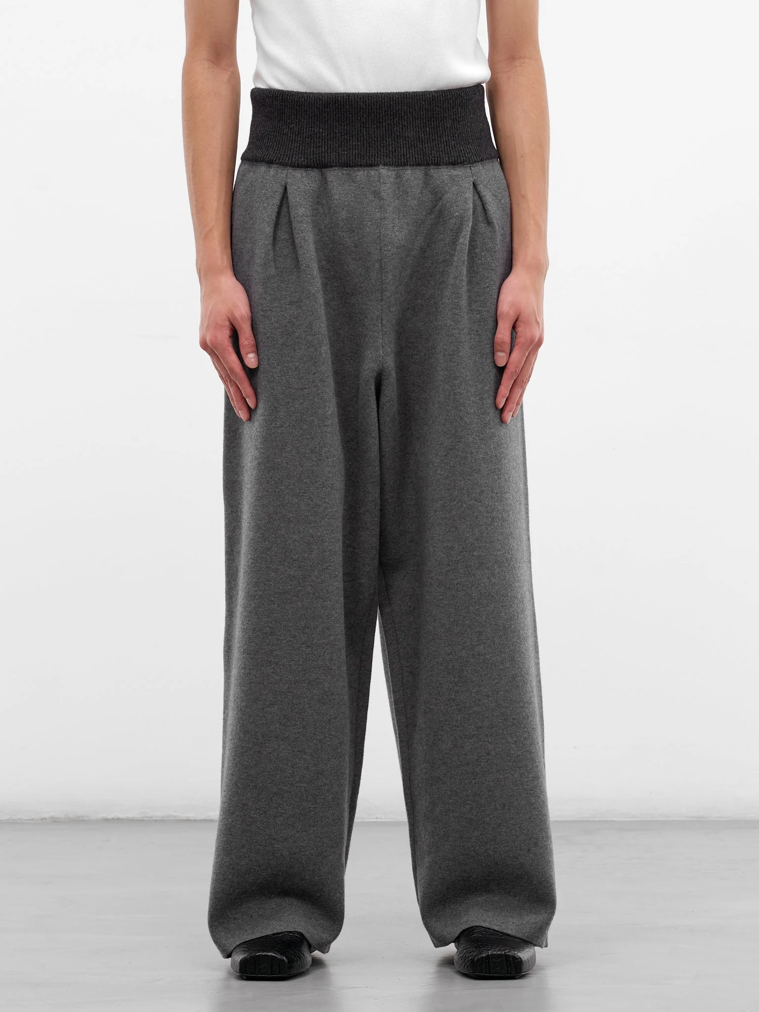 Gray Wool Ribbed Waistband Trousers