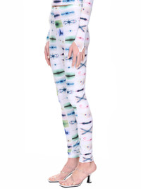 MAISIE WILEN pants in white, leggings design, stretch fabric, printed lens flare images, mid-waist, fitted. Standard Sizing Model is 5'9" wearing size XS. Bust: 33" Waist: 24" Hip: 33"