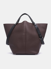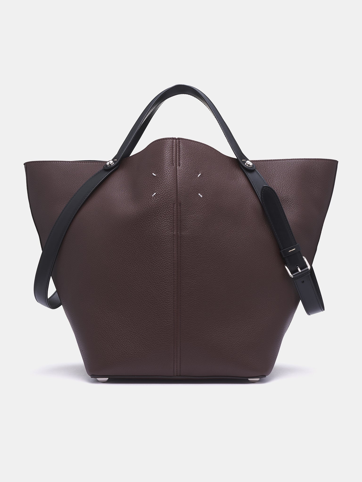 MAISON MARGIELA handbag in brown, horseriding-inspired tote bag design, paneled leather construction, full-grain, adjustable pin-buckle strap, signature stitch detailing, metal feet, interior pocket, magnetic closure, logo detailing, lined. Made in Italy Body: 100% Calf Leather Contrast: 100% Calf Leather Lining: 100% Goat Leather Inside: 100% Calf Leather One Size