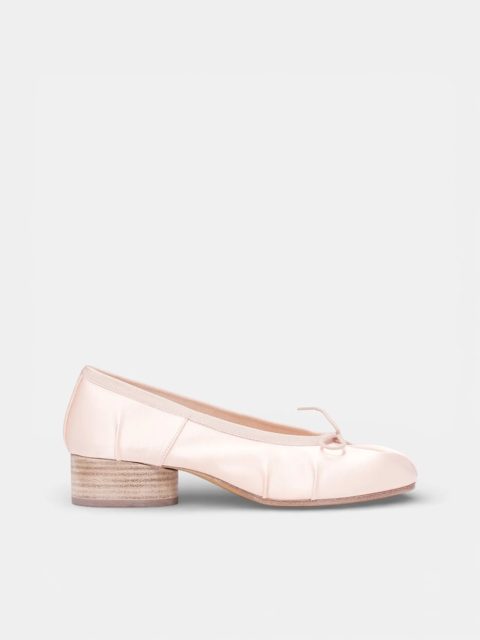 Satin Tabi ballerina with split-toe design and front bow detail. Featuring: • Low-cut • Signature tabi split toe • Front bow • Four stitches at back • 3 cm heel • Made in Italy • Upper: 44% Cotton 36% Acetate 16% Polyamide-Nylon 4% Elastane-Spandex | Lining: 100% Cotton | Inside: 100% Ovine Leather | Sole: 100% Calf Leather | Contrast: 100% Rubber • Italian sizing