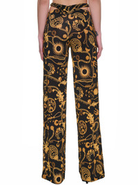 MARINE SERRE pants in black, signature print track design, cross mid-waist, straight leg, long length, regular fit. Made in Portugal Standard Sizing 93% Viscose, 7% Elastane Model is 5'10" wearing size 36. Bust: 28.5" Waist: 22" Hip: 34.5"