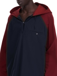 Marni cotton parka in multicolor, attached hood with adjustable drawstring, two button closure at collar, jetted chest pocket with button closure, long sleeves, multi color paneling, drawstring adjusted waist, tonal stitching. Made in Italy. Italian Sizing. Composition - 100% Cotton. Model Measurements: Model is 6ft 2” and wearing a size 50. Shoulders: 18” Chest: 31” Waist: 27”