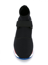 From Marni, black neoprene hi-top sneakers featuring velcro strap fastening, rounded toeline, multicoloured midsole, and rear heel tab. Upper: 100% Nylon Sole: 100% Rubbe EU Sizing.