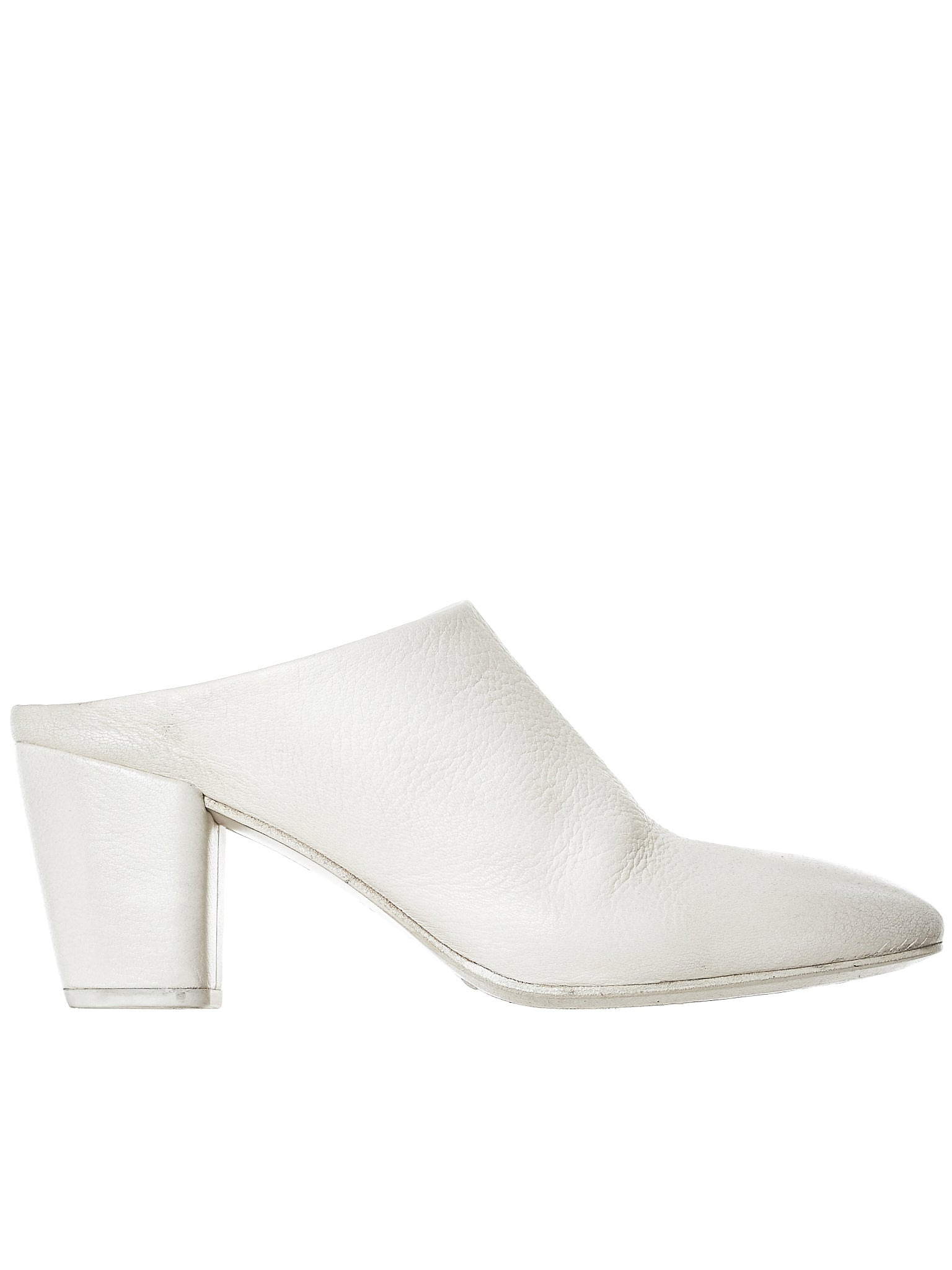 Marsell slip-on leather heels in white, washed leather finish, goodyear welting, and tonal stitching. Made in Italy. Composition - 100% Leather EU Sizing.