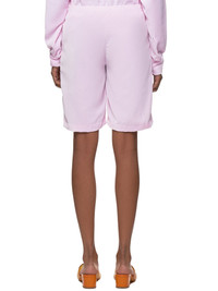 Maryam Nassir Zaden shorts in light pink, elastic waistband, slash hand pockets, straight/finished hem, tonal stitching. Made in the United States. Composition - 100% Polyester Model is 5ft 7” and wearing a size 2. Bust: 23” Waist: 22” Hip: 33”