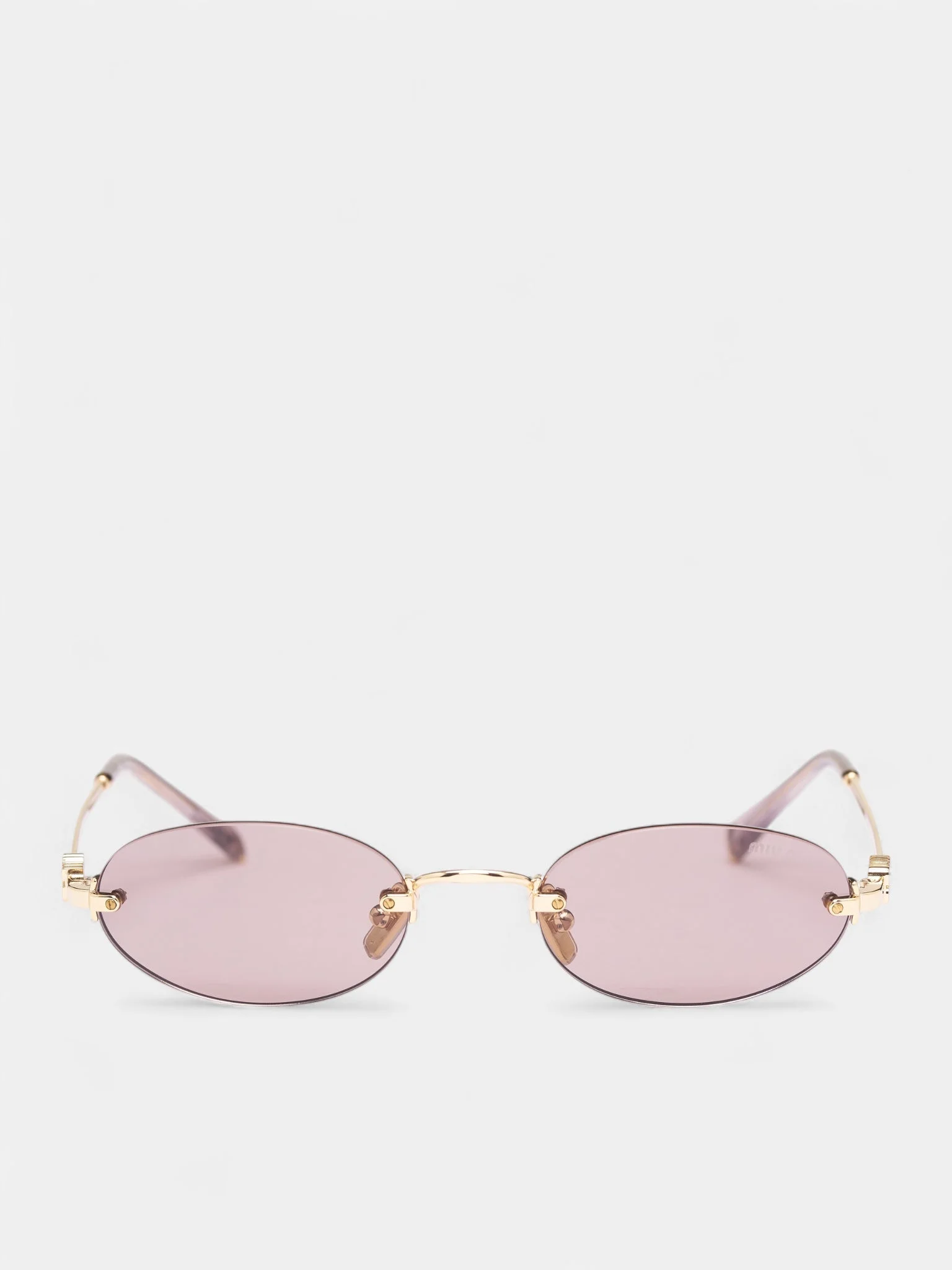 Featuring: • Oval frame design • Rimless • Gold-tone temples and logo detailing • Transparent acetate temple tips • Purple-tinted lenses • Adjustable nose pads • Case included • 100% Metal | 100% Acetate • One size