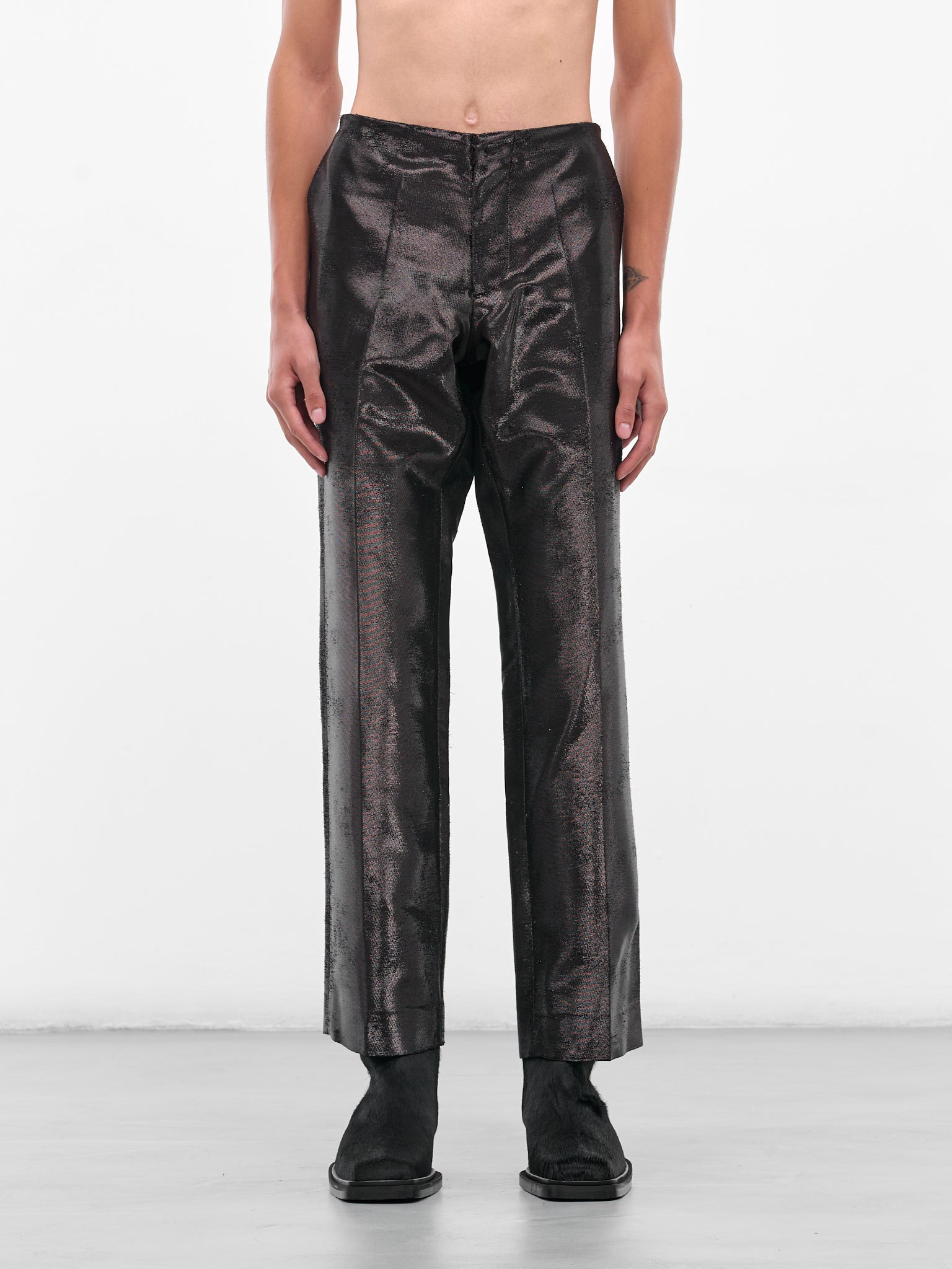 Black Distressed Jacquard Shine Trousers