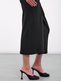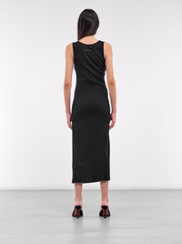 MM6 MAISON MARGIELA dress in black, paneled cotton construction, v-neckline, asymmetric draping, hook-eye clasp fastening, wrap-style closure, shoulder straps, sleeveless, armscyes, back signature stitch detailing, straight hem, midi-length, slim fit. 98% Cotton 2% Elastane Standard Sizing Model is 5'7" wearing size S. Bust: 32.5" Waist: 24" Hips: 32"