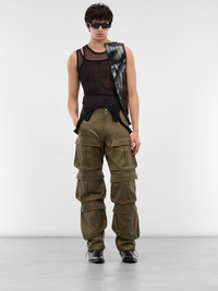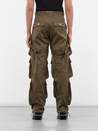 Featuring: • Relaxed fit • Wide leg • Belt loops and back logo patch • Inset and back flap pockets • Multiple cargo pockets with buckle straps • Adjustable bungee drawstring at hem • Made in Ukraine • Main Fabric: 100% Cotton | Lining: 100% Cotton • Standard sizing Model is 6'4" wearing size L. Shoulders: 18" Chest: 36" Waist: 28"