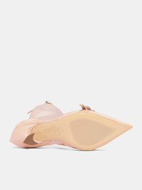 Nude calf-high boots in semi-sheer mesh with contrast suede overlays and sculpted kitten heels. Adjustable pin-buckle straps and a side zip closure refine the layered construction. Featuring: • Semi-sheer mesh construction • Calf-high • Adjustable pin-buckle strap at opening • Side zip closure • Contrast suede overlays throughout • Sculpted kitten heel • Pointed toe • Pin-buckle straps at vamp • Logo debossing at sole • Rubber-injected heel • Lined • Made in Italy • Upper: 80% Nylon 20% Lambskin | Lining: 100% Goatskin | Sole: 80% Calfskin 20% TPU • Italian sizing