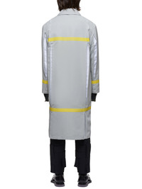 Namacheko lab coat in gray/yellow, spread collar, concealed front button placket, straight/finished hem, tonal stitching. Made in Belgium. Composition - 100% Polyester Model is 6ft and wearing a size S. Shoulders: 18” Chest: 35” Waist: 28”