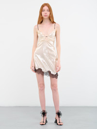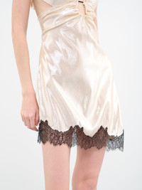 Lace-Trimmed Satin Mini Dress metallic