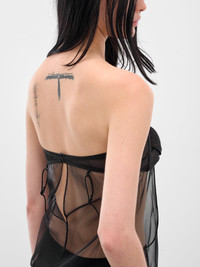 This Upside Down Pleated Bra Top in black introduces a relaxed silhouette in sheer fabric, featuring a straight, strapless neckline with sculptural pleating and a back clasp with cut-out. Featuring: • Relaxed fit • Straight strapless neckline • Sheer fabric • Pleated and structured bust • Back clasp and cut-out • Made in Italy • Main: 84% Polyamide 16% Elastane | Contrast: 100% Polyamide • Italian/Standard sizing Model is 5'8" wearing size 40/S. Bust: 28.5" Waist: 22.5" Hips: 33.5"