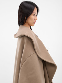Featuring: • Oversized fit • Bambola opera coat design • Asymmetric draping throughout • Oversized draped collar • Double-breasted wrap closure • Dropped shoulders • Long sleeves • Side pockets • Mid length • Made in Italy • Main: 70% Wool 30% Cashmere | Lining: 100% Cotton • Standard sizing Model is 5'10" wearing size S. Bust: 31” Waist: 22” Hips: 33”