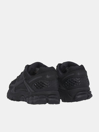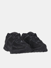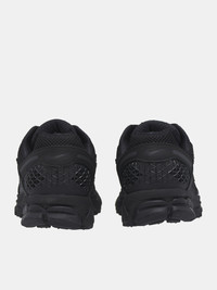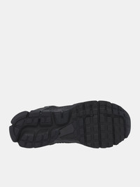 NIKE shoes in black, signature sneaker design, textile upper construction, low-top, TecTuff overlay, mesh underlay, swoosh motif, branded tongue patch, lace-up fastening, rubber sole. US Men's Sizing SHIPS WITHIN US ONLY