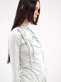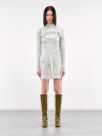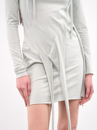 OTTOLINGER dress in grey, deconstructed design, paneled cotton construction, distressing & draping throughout, asymmetric neck, strap self-tie, layered deconstructed detailing, shoulder cut-out, long sleeves, extended trim & deconstructed draping, straight hem, mini-length, slim fit. Made in Greece 97% Cotton 3% Elastane Standard Sizing Model is 5'8" wearing size S. Bust: 28.5" Waist: 22.5" Hips: 33.5"