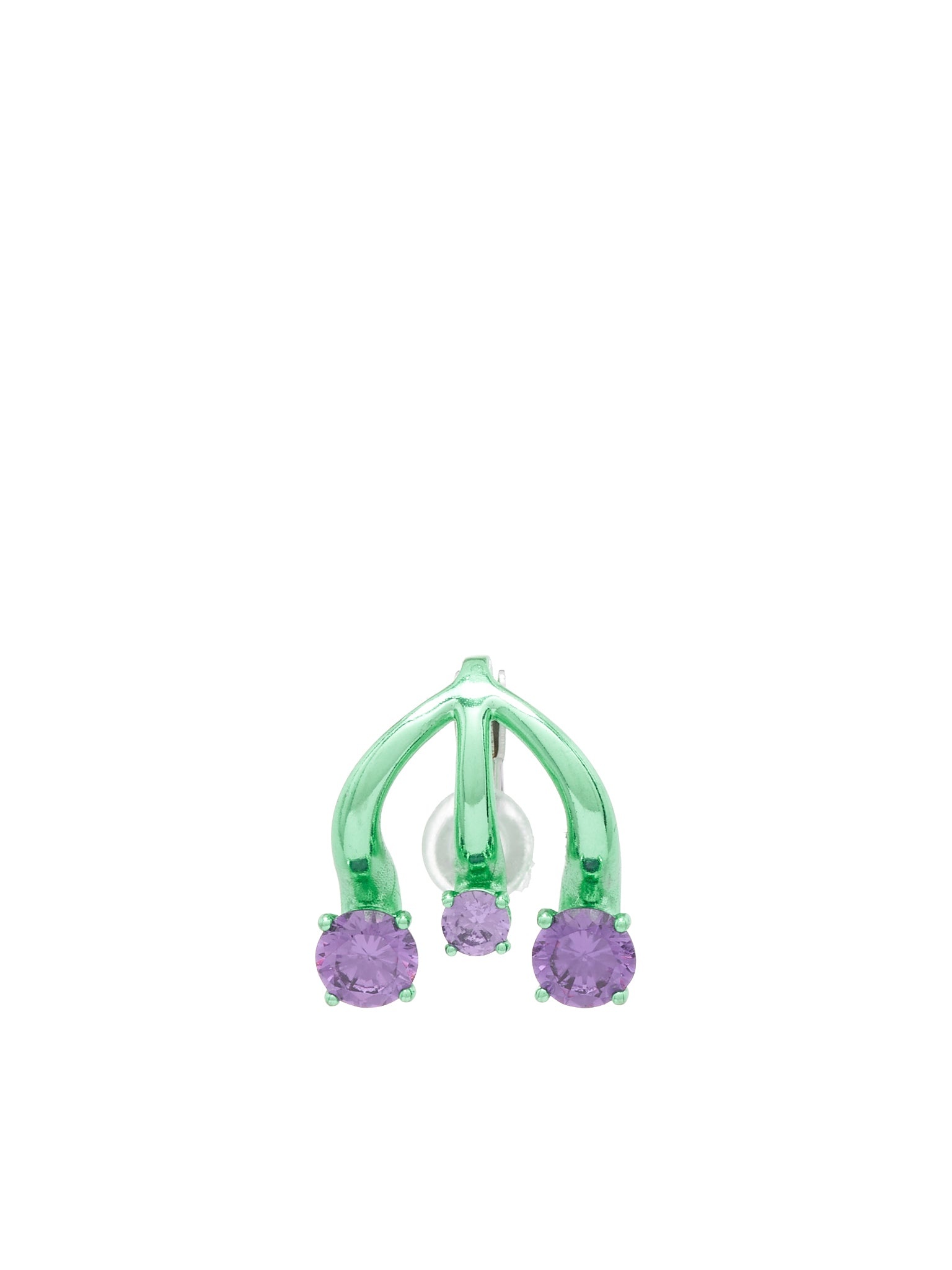 Panconesi single earring in green tone featuring hinged clip on closure and crystal embellishments. Made in Italy. One Size Composition - Sterling Silver, Crystals.