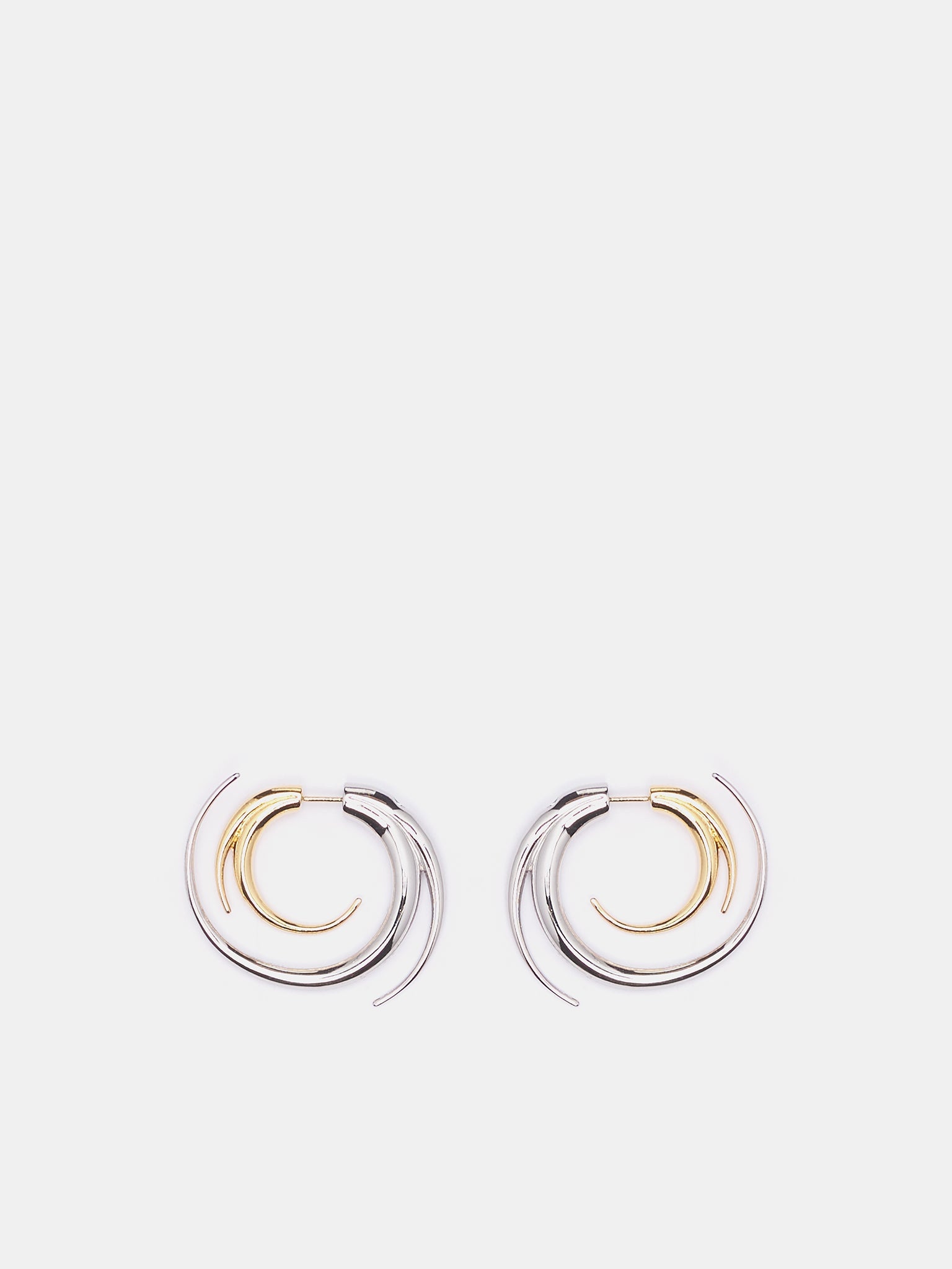 PANCONESI earrings in silver & gold, brass construction, rhodium & 18K gold plated, two-tone, organic spiral design, pin-back fastening. Made in Italy Brass & 18K Gold & Rhodium One Size