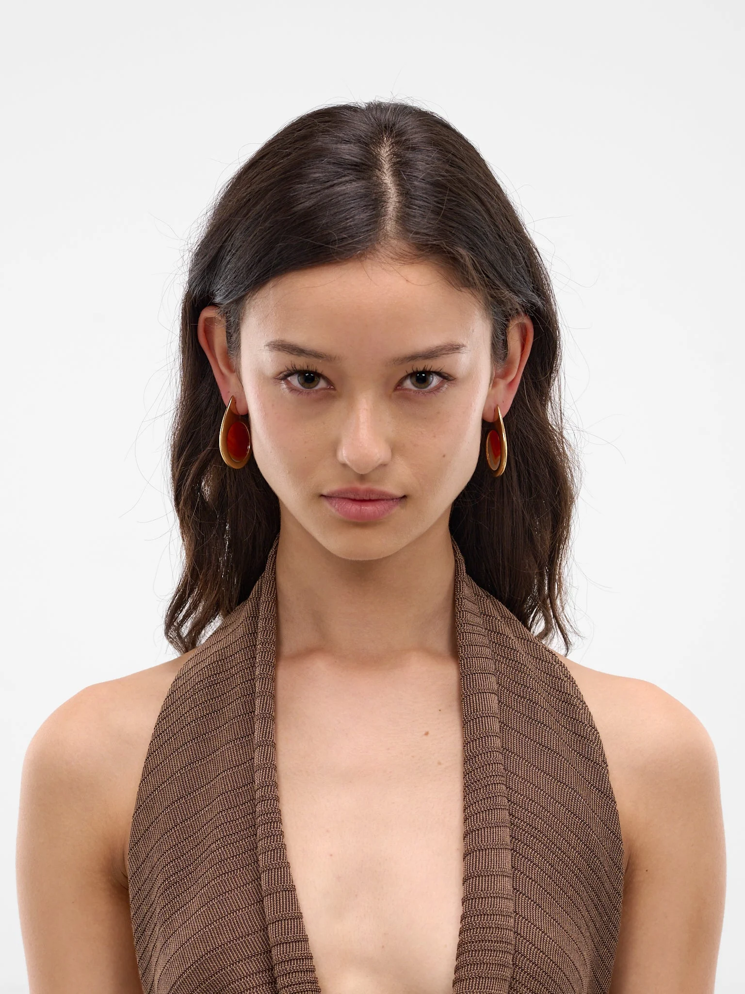 Earrings in gold and red constructed in brass with 18K gold plating and circular agate stone. Featuring: • Brass construction • 18K gold plating • Red agate stone • Organic shape • Circular stone setting • Pin-back fastening • Made in Italy • Metal: 100% Brass | Vermeil: 100% 18K Gold | Stone: 100% Red Agate • One size