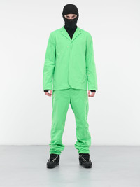POST ARCHIVE FACTION (PAF) green blazer, technical design, YKK EXCELLA® zippers, eight pockets, notched lapel collar, concealed snap button closure, fully lined, regular fit. Made in Korea Body - 75% Polyester, 25% Elastane Lining - 52% Cotton, 41% Nylon, 7% Elastane Standard Sizing Model is 6’1” wearing size L. Shoulders: 19” Chest: 38” Waist: 31”