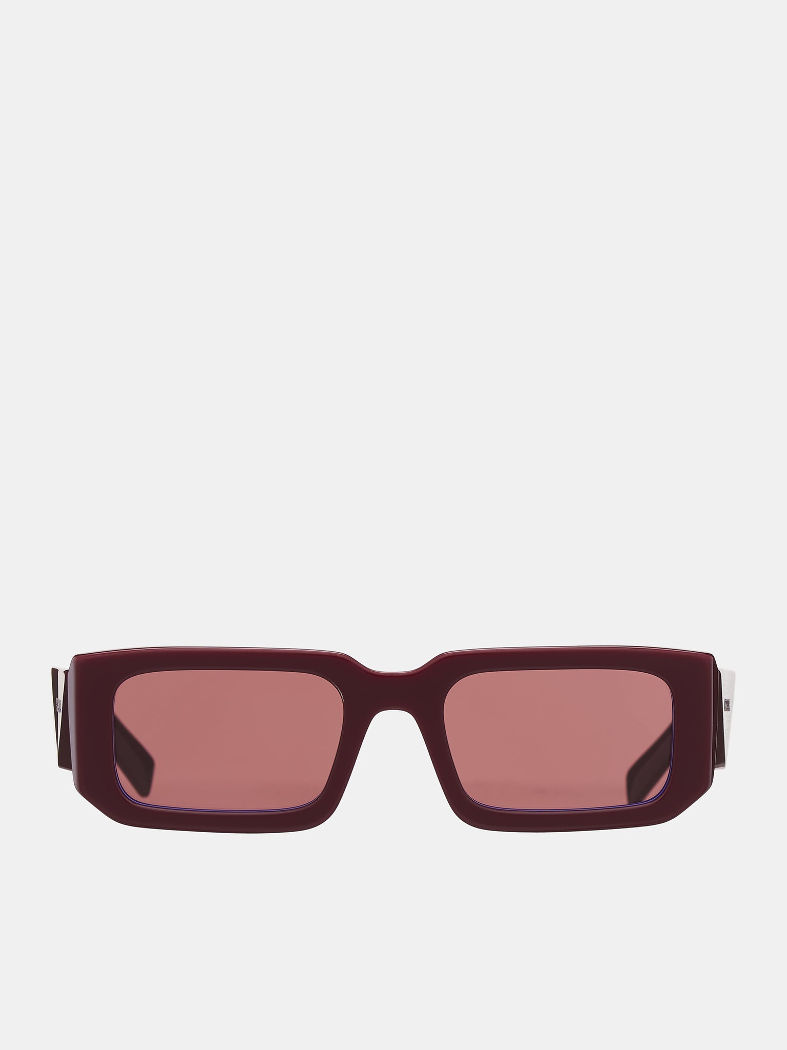 PRADA sunglasses in Etruscan, acetate construction, rectangular frames, violet-tinted nylon lenses, integrated nose pads, temple logo detailing, case included. Made in Italy Acetate & Polyamide One Size