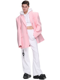 RAF SIMONS sweater in white, cotton jersey, embroidered logo, hooded collar, adjustable drawcord, short sleeves, ribbed trim, logo embossed leather patch, cropped, regular fit. Standard Sizing 100% Cotton Model is 5'9.5" wearing size XS. Bust: 32” Waist: 24” Hip: 35"