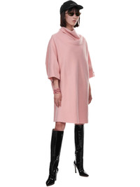 Raf Simons tunic top in pink, gathered collar, short sleeves, dropped shoulder, oversized silhouette, tonal stitching. Made in Romania. Composition: 71% Wool, 29% Mohair. Standard S-L Sizing. Model Measurements: Model is 5ft 8” and wearing a size S. Bust: 32” Waist: 24” Hip: 34"