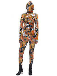 Richard Quinn velour top in multicolor, all-over paisley pattern, split turtleneck collar, shoulder padding, long sleeves, straight/finished hem, tonal stitching. Made in England. Composition - 90% Polyester, 10% Spandex Model is 5ft 8” and wearing a size 8. Bust: 31” Waist: 24” Hip: 35”