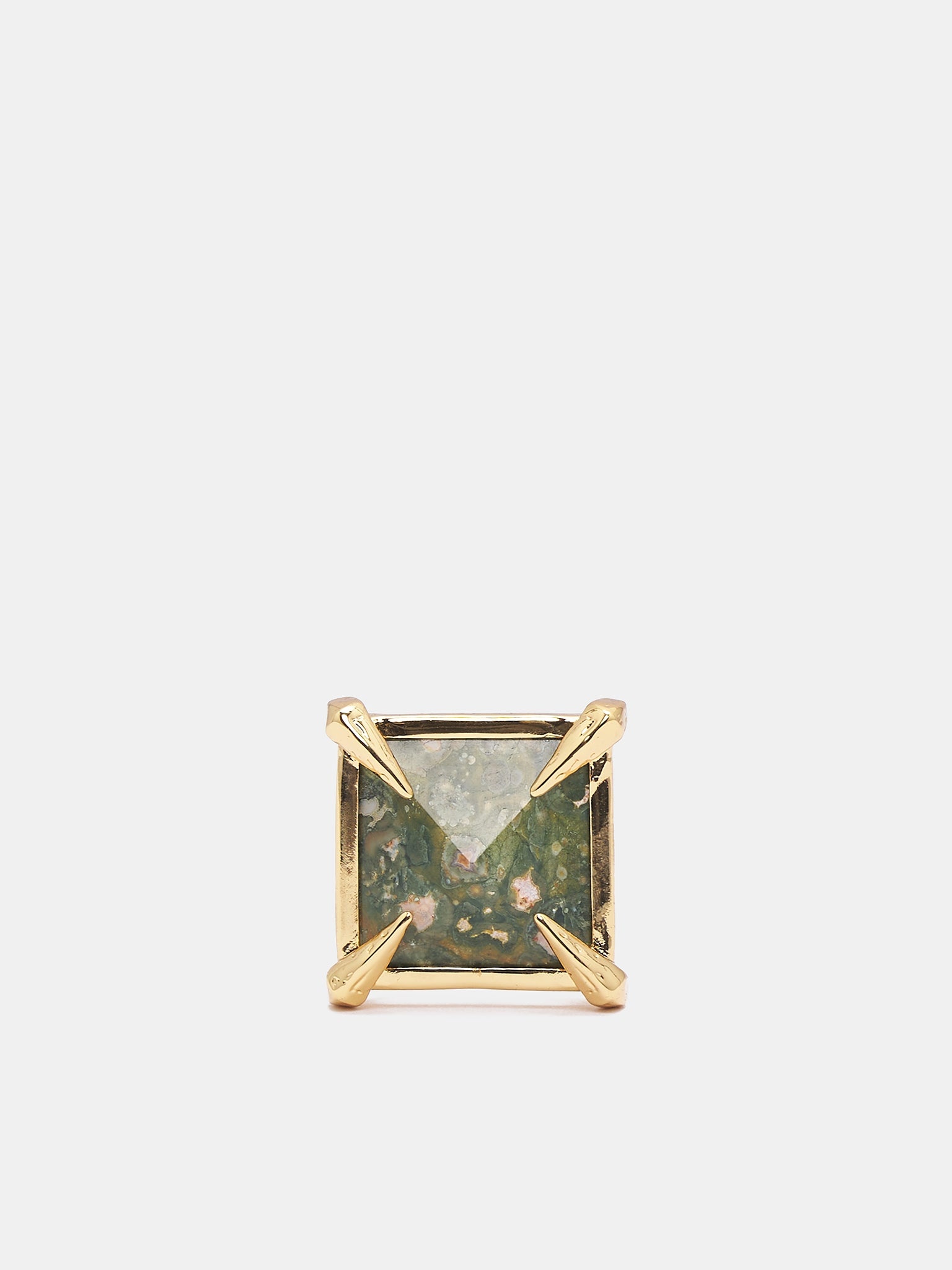 ROBERTO CAVALLI ring in gold & green, metal & gemstone construction, pyramid gemstone, engraved hallmarking. Standard Ring Sizing
