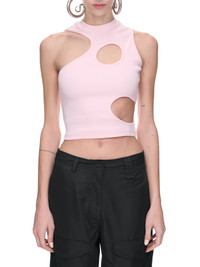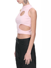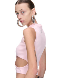 ROMBAUT tank in pink, tank design, cut-out details, organic cotton, round neck, back logo detail, slight crop, slim fit. Standard Sizing 100% Organic Cotton Model is 5'9" wearing size XS. Bust: 33" Waist: 24" Hip: 33"