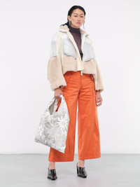 SACAI orange pants, cargo design, high-waist, belt loops, waist adjusters, button & zip-fly, flap pockets, wide leg, slight crop, regular fit. Made in Japan Japanese Sizing Model is 5'10" wearing size 2. Bust: 31" Waist: 23.5" Hips: 35"