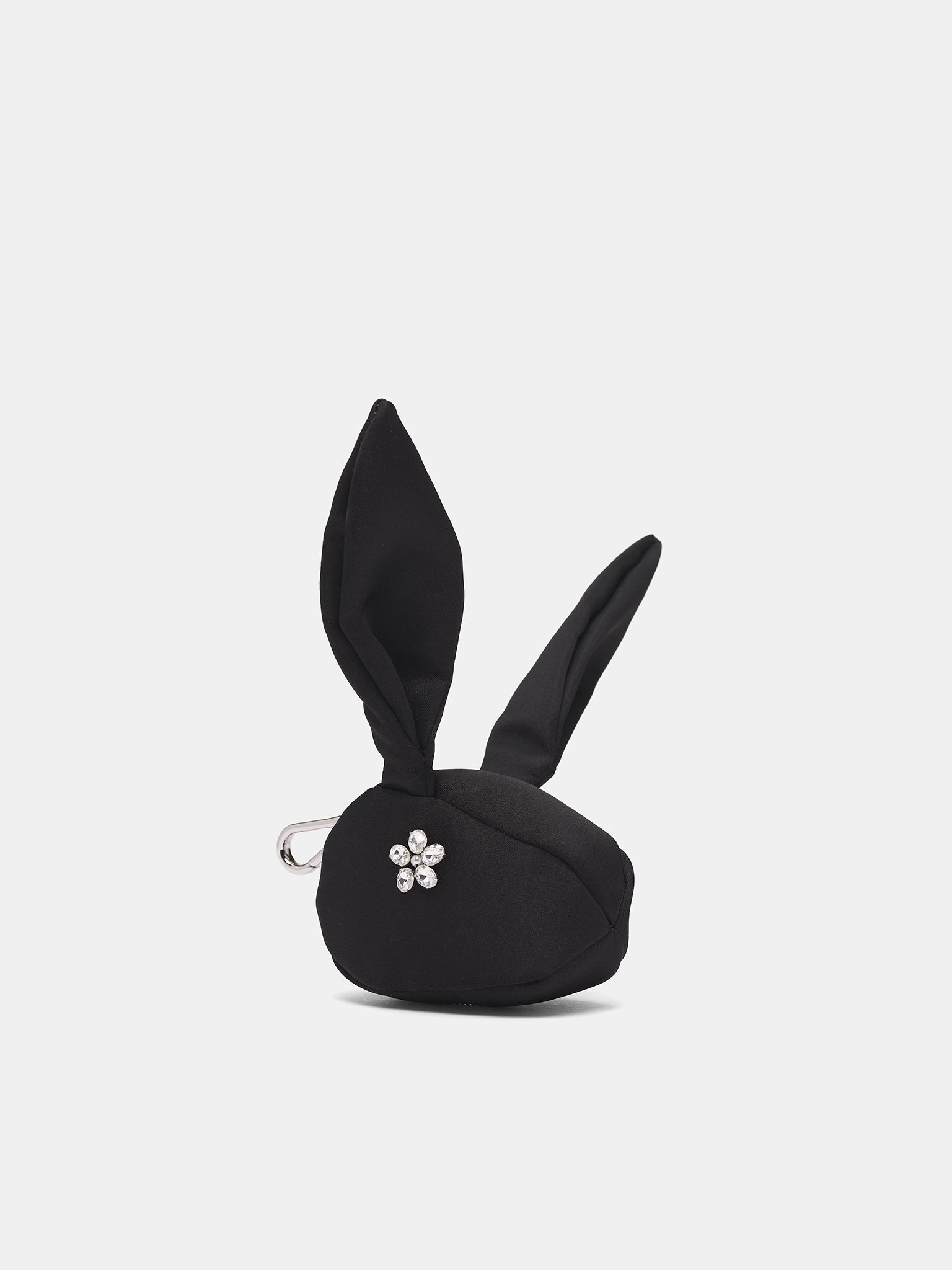 A plush satin bag charm with a zip-closure pocket sized for wireless headphones. A playful hare-shaped coin purse designed with signature floral embellishment and lobster clasp fastening. Featuring: • Standard fit • Satin construction • Signature floral embellishment • Lobster clasp • Zip-closure pocket • Bag charm design • Made in China • Outer: 100% Polyester | Lining: 100% Polyester | Trim: 100% Calf Leather (Excluding Embellishment) • One size