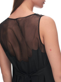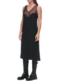 Simone Rocha slip dress in black, silk mix slip design, scallop tulle detailing & tie, below the knee length, fully lined. Made in Portugal UK Sizing Composition: (Main) 73% Acetate, 27% Silk, (Secondary) 100% Polyamide, (Lining) 100% Cupro Model is 5'11" and is wearing size 6. Bust: 32” Waist: 24” Hip: 35"
