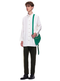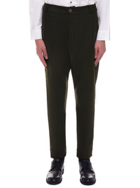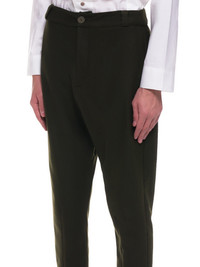 TooGood the metal worker trousers in forest, adjustable elastic waistband with buttoned closure, belt loops, zip-up fly, front waist slash hand pockets, straight/finished hem, tonal stitching. Made in Poland. Standard Numeric Sizing. Composition - 76% Virgin Wool, 23% Nylon, 1% Elastane Model Measurements: Model is 6ft 2” and wearing a size 4. Shoulders: 18” Chest: 31” Waist: 27”