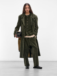 These green "Perch Pants" are crafted from cotton-linen velvet for a soft, dimensional look. Relaxed and straight-cut, the design is completed with an adjustable drawstring waistband, belt loops, and four-pocket styling. Featuring: • Relaxed fit with straight leg • Velvet construction • Adjustable drawstring waistband with belt loops • Zip fly closure • Four-pocket styling • Made in Italy • 55% Cotton 45% Linen • Standard sizing Model is 5'11.5" wearing size M. Shoulders: 18" Chest: 36" Waist: 30