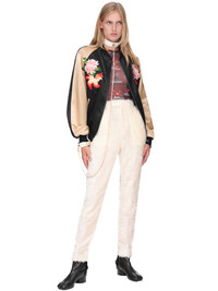 Undercover choker in white, adjustable back buckle, cuff and chain attachment, gold-tone hardware, crocodile embossed leather. Made in Japan. One Size.