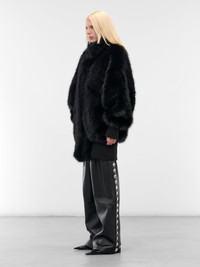 Black Oversized Fur Bomber Jacket