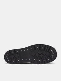 Vetements black Stomp Compact boots in buffed leather, finished with treaded Margom sole. Featuring: • Italian sizing • Buffed leather construction • Mid-calf silhouette • Lace-up closure • Inner zip fastening • Foam rubber midsole • Treaded Margom rubber sole • Heel height: 2 in • Made in Italy • Upper: Leather | Sole: Rubber