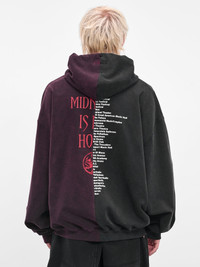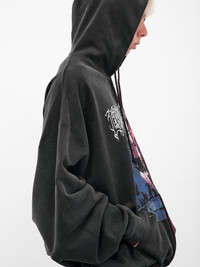 The black and burgundy hoodie is realized in a cut-up construction, finished with Cradle of Filth graphics, logo embroidery at the hood, and a two-way zip closure. Its oversized silhouette and rib-knit trims deliver an intentionally deconstructed look. Featuring: • Oversized fit • Cut-up hoodie construction • Cradle of Filth graphic print • Hood with adjustable drawstrings and logo embroidery • Two-way zip closure • Dropped shoulders and long sleeves • Rib-knit cuffs and hem • Front kangaroo pockets • Made in Portugal • 80% Cotton 20% Polyester • Standard sizing Model is 6'0" wearing size M. Shoulders: 19" Chest: 38" Waist: 30