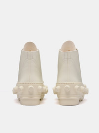 WALTER VAN BEIRENDONCK boots in milk, leather upper construction, ankle-high, lace-up fastening, rubber stud embellishment, rubber block heel, rubber sole, lined. Upper: Leather Sole: Rubber Italian Sizing