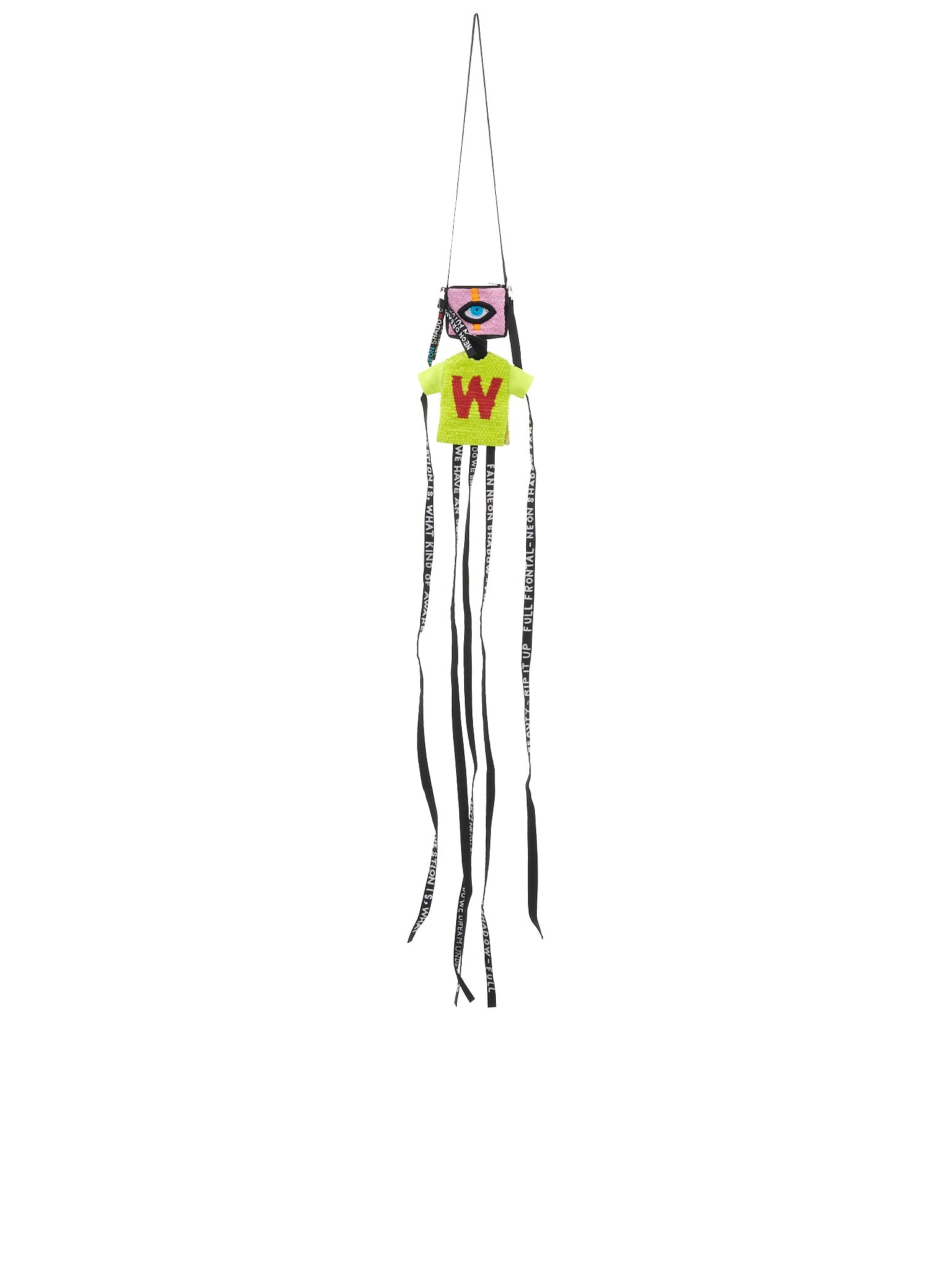 Walter Van Beirendonck anthropomorphic hand-beaded necklace in multicolor, featuring a top cardholder with zip closure and hanging strap details. Made in India One Size. Composition - Cotton, Synthetic Materials.