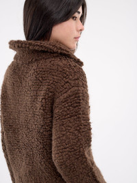 WE11DONE cardigan in brown, acrylic-mohair blend, paneled knit construction, boucle knit, spread collar, front button placket closure, long sleeves, straight hem, relaxed fit. Made in South Korea 55% Acrylic 17% Mohair 17% Wool 11% Nylon Standard Sizing Model is 5'8" wearing size S. Bust: 32" Waist: 24" Hips: 33"