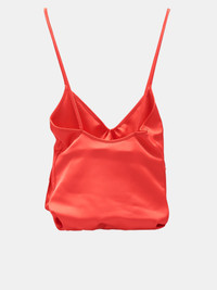 WE11DONE bag in red, tank top handbag tote bag design, paneled polyester construction, twin top handles, magnetic closure, wire boning, inner logo engraving, from patch & zip pockets. Made in Korea 100% Polyester One Size