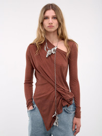 Y/PROJECT necklace in silver, brass construction, abstract floral pendant, extended chain & floral detailing, metal logo plaque, clasp fastening. 100% Brass One Size